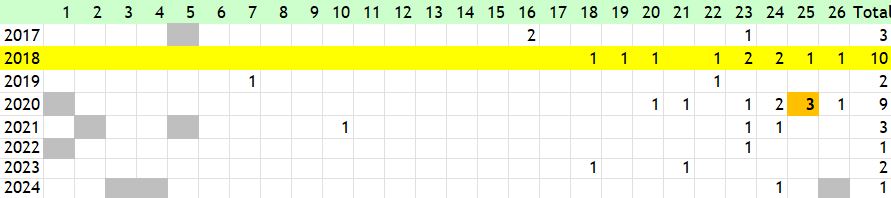 Earliest date: 19 April 2009 at Frogmore Gravel Pit