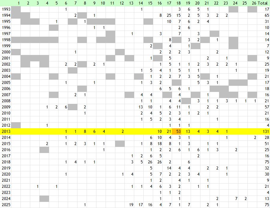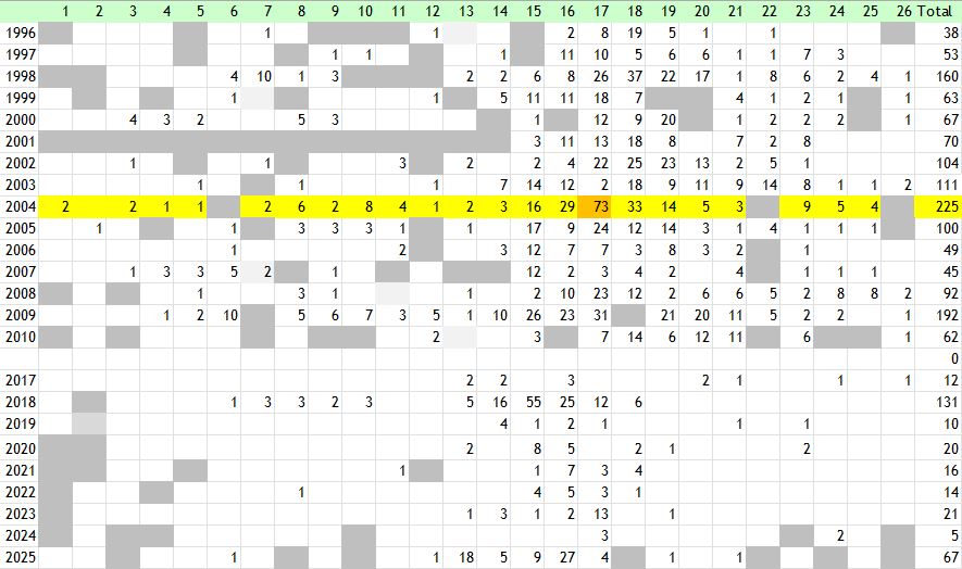 Latest date: 18 October 1997 at Benington Lordship