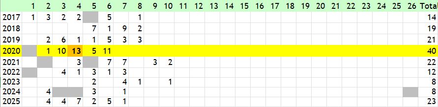 The Orange-tip is present in every tetrad as shown on the map. The largest concentrations appear to be in the Knebworth woods complex, Fairlands Valley Park and the field north of St Nicholas Church. The highest count of 33 was recorded by Ken King on his Knebworth Park transect on 9 May 2005. In 2019, the balmy weather in February saw emergence on 24 March in a Stevenage garden, beating the previous first sighting date by seven days. Unsurprisingly, the flight season ended early with only two records in June. Numbers were slightly below average in 2023 and 2024 doubtlessly can be explained due to inclement weather in the spring.