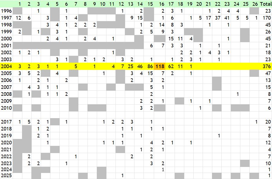 As shown on the map, the butterfly occurs all over the Stevenage area. 2004 was an extraordinary year around Burleigh Farm and Graffidge Wood where Ken King counted over 250 in July but generally 2014 was found to be the best year during the survey. The largest populations were found in Great Ashby Park, where 53 specimens were recorded on 16 June. The vast majority of visits until 2014 yielded single-figure counts when 30 years ago, finding dozens would be a common occurrence in season. Numbers have dropped significantly each year since 2014. 2024 appeared to have been the worst on record with only 27 reports of 47 individuals and 12 of those occurred on one visit at Canterbury Way Park on 14 July. No reports received in the autumn as is mostly evident in the recent past which suggest the butterfly is now entering hibernation early and skipping a generation.